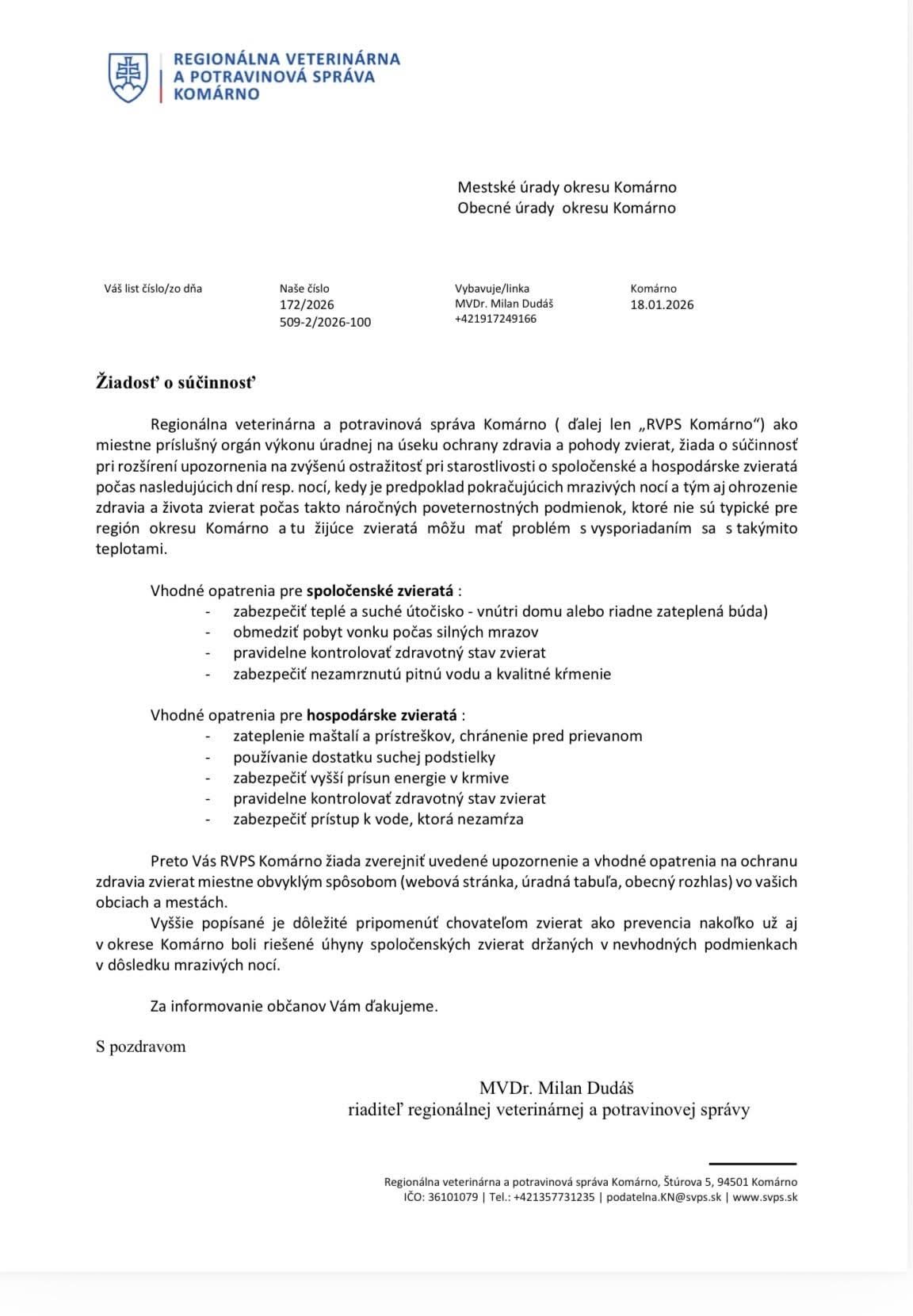 Opatrenia na ochranu zdravia zvierat počas mrazivých dní a nocí
